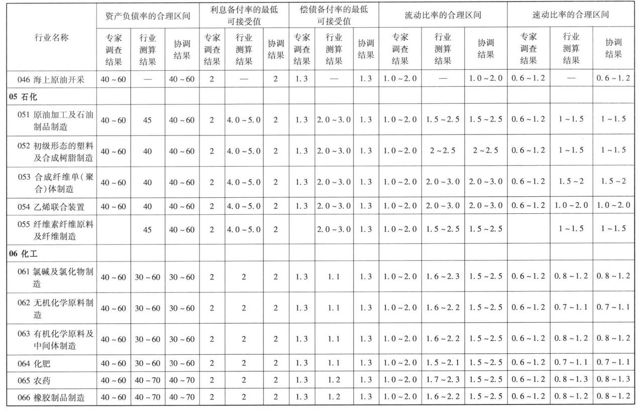 总资产报酬率、净利润率、资产负债率、流动比率、速动比率等参数,应测定其取值的合理区间。具体测定可采取下列方法: