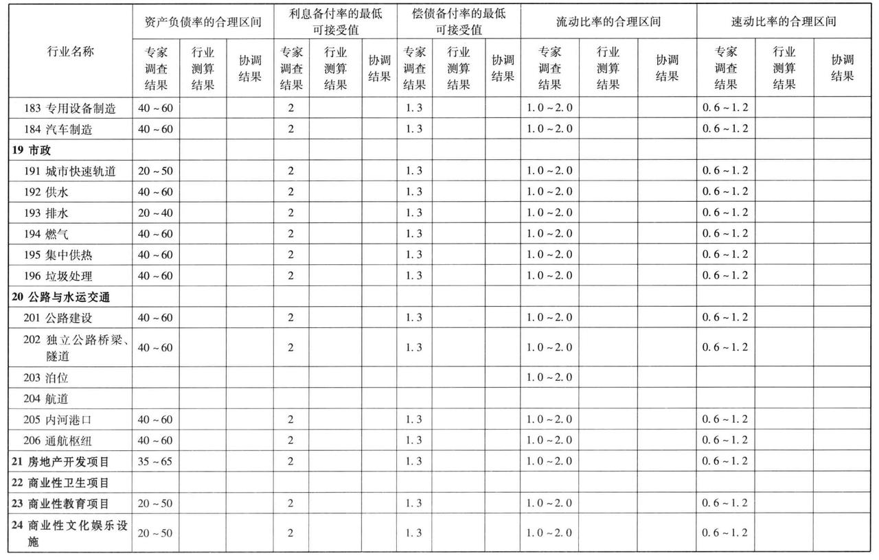 表2.13-2 部分行业建设项目偿债能力测算与协调